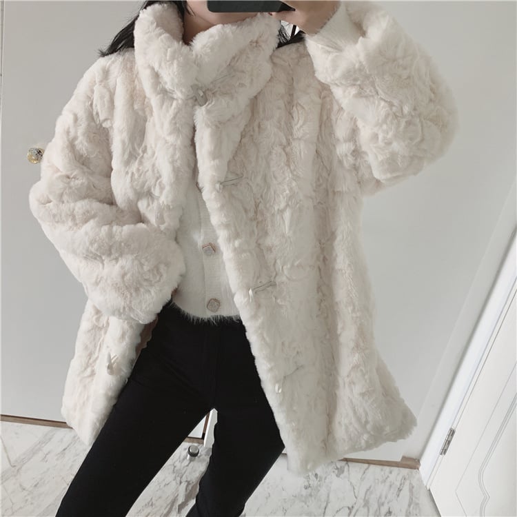 Available in one size, this coat is designed with a loose fit to flatter all body types. Whether you're dressing up for a special occasion or looking for a cozy layer for everyday wear, this coat is your go-to option.