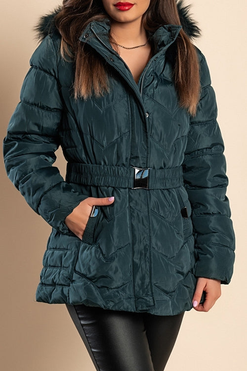 Padded winter jacket has warm filling and is made of high-quality materials. The winter jacket has a high collar and hood with synthetic fur. It closes with a zipper in the front. Available in larger sizes up to 4XL.